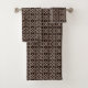 Os tons ricos e castanhos escuros definem esse padrão original inspirado na África impresso neste conjunto de toalhas para dar ao seu banho uma aparência única.