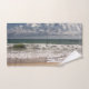 Nuvens lindos acima do Oceano Atlântico. Ondas de oceano que cobrem delicadamente a praia de Florida, onde está o borrelho bonito do shorebird que funciona da água. Esta vista da praia de Florida ao Oceano Atlântico no dia ensolarado. Aprecie o cenário em seu banheiro em seu grupo de toalha do banheiro e em outros mercadorias do banheiro (ajuste como: esteira de banho, luz da noite, suporte da escova de dentes e grupo do distribuidor do sabão, cortina de chá - com a mesma imagem). Todo este grupo em minha coleção do banheiro. Fotografia e design por Zina Stromberg.