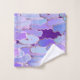 Conjunto de toalhas apadrinhado com nuvens estilizadas em gradientes sedosos de roxo violeta mole, aqua, e azul pálido, acentuados com vislumbres de céu profundo roxo. Nas tradições japonesas, as nuvens representam elegância e alto status. No budismo, as nuvens significam o "Paraíso Ocidental" para além da Terra