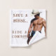 Escorregadio de cavalo de SlipperyJoeVaqueiro de palha de palha que homem muscular sem camisa segurando sela bem definida cápsula esculpida seis chapéus de sela cinta preta de prata rancheiro músculos salva-vidas correndo à frente ousada viagem artística ocidental robusta presentes orgulho gay LGBTQIA yeehaw jeans azuis