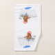 Este grupo de toalha tem minha imagem dos desenhos animados de um gato em um boné de chá, tomando um banho. Tem um bar de sabão em uma mão e de uma esponja na outro.