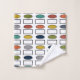 Este conjunto de toalhas tem uma design moderna do século médio de retângulos e ovais repetidos em cores retrorreflectoras.