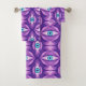 Conjunto De Toalhas Olhos Azuis em Folhagem Roxa Arte Botânica Escura