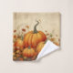 Toalha com ilustração rústica com abóboras laranja e folhas de queda. Uma vibração do outono.
