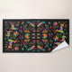 Ele apresenta um Impressão de Otomi mexicano com animais, pássaros e flores em cores brilhantes...num fundo negro!