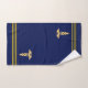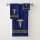 Ouro caduceus elegante em azul marinho com faixas de ouro em conjunto de toalhas.