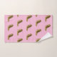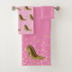 Toalha de banho cêntrica feita em tons de cor-de-rosa, com gráficos de ouro e rosa claro confetti e ouro em saltos altos. Toalha divertida para qualquer garota etária.
