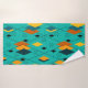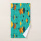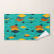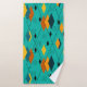 Este conjunto de toalhas tem um design atômico moderno do século médio de diamantes, e estereótipos em um campo de turquesa.