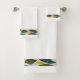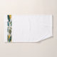 Folhas de vários tipos e ramos de folhas, feitas em aquarela, espalhadas umas das outras, em cores verdes e amareladas, simulando a chegada do outono