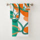 Este conjunto de toalhas tem uma design moderna do século médio de ovais e contornos ovais em laranja e lacre num campo de branco.