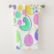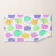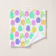 Este conjunto de toalhas tem uma design Páscoa de ovos em roxo, amarelo, verde, azul e rosa espalhados com seus contornos.