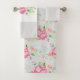 Conjunto De Toalhas Padrão Botânico rosa na Cinza clara
