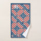 Uma toalha patriótica elegante para a comemoração do Dia da Independência Americana de 4 de julho. Presente perfeito para um amigo, familiar ou qualquer outra pessoa. O design apresenta um padrão vermelho, azul e branco de estrelas e listras em vermelho, branco e azul com uma borda azul. O monograma pode ser personalizado clicando no botão "personalizar".