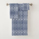 Conjuntos de toalhas modernos, na moda e únicos com padrão de chave grego azul-marinho. Isso será perfeito como presente de formatura e casamento.