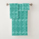 Toalha definida num padrão clássico de chave grega em turquesa/pavão num fundo aquático leve