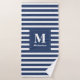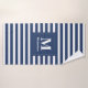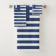 Conjunto de toalhas de banheira com risca branca e azul monograma