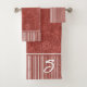 Conjunto De Toalhas Padrão de Boho Vermelho Monograma e Stripes Branca
