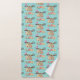 Toalha com padrão repetitivo. Projetado com uma ilustração de uma preguiça marrom gira giro de cabeça para baixo. Esta pequena cara engraçada está segurando um galho que tem um pássaro rosa em um lado do galho e um buquê de rosa ao estilo rabisco do outro lado. Abaixo deles está um arranjo de flores coloridas desenhadas à mão. Esta preguiça adorável também tem bochechas rosadas rosa e 3 corações bonitinhos no seu bumbum. Fundo de cor aqua leve.
