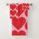 Conjunto De Toalhas Padrão de Corações Vermelho e Rosa Romântico do ri