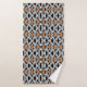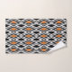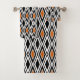 Conjunto de toalhas de banheiro com um padrão de diamante preto, branco e laranja.