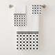 Um conjunto de toalhas de banheiro preto e branco, com padrão de diamante.