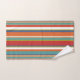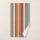 Conjunto de toalhas de tendência com um padrão de stripe multicolorido em vermelho, azul, laranja e verde.