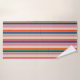 Design de multicores na moda, incluindo tons cor de laranja, azuis, rosa, num padrão de listras vibrante e pastel mix; um novo e brilhante olhar para uma casa de banho/chá