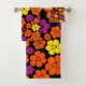 Conjunto De Toalhas Padrão de Flor - Preto, Rosa, Laranja e Amarelo