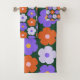 Conjunto De Toalhas Padrão de Flor Retro Cugado em Roxo e Verde