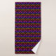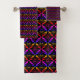 O conjunto colorido de toalha de banho tem um padrão de flores em forma de diamante cocho em arco-íris sobre fundo preto.