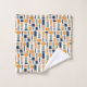 Este conjunto de toalhas tem uma design moderna do século médio de ovais e retângulos em padrões que se repetem na design.