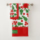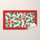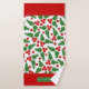 O padrão de groselha e bordas vermelhas com rebarba de Natal, Conjunto de Toalhas de Banho. Estas toalhas são enfeitadas com um charmoso padrão de bagas sagradas e têm elegantes bordas vermelhas escaldadas. A toalha de banho apresenta o padrão festivo de bagas ocas e apresenta bandas nos lados curtos, com bordos recortados. Além disso, há um quadro adorável onde você pode personalizá-lo com seu nome de família. A toalha da mão também é lindamente projetada com uma borda escalpada, adicionando um toque de elegância. O pano de lavagem, por outro lado, está numa cor vermelha vibrante no centro, rodeado por uma deliciosa borda de morango oca e tem o seu monograma.