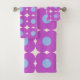 Este conjunto de toalhas de banho de na moda apresenta um padrão floral retrô divertido em roxo e azul.