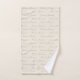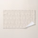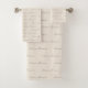 Um belo conjunto de toalhas de banheiro bege neutro com padrão monográfico que pode ser personalizado para o seu nome. A fonte do script de assinatura é classe e na moda.