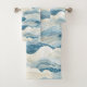 Conjunto De Toalhas Padrão de Onda Azul e Branco