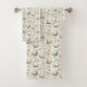 Este conjunto de toalhas de banho de Páscoa apresenta um padrão charmoso e delicado de ovos aninhados aninhados entre flores silvestres. O design alterna entre os ovos azul-macio e bege, cada um enfeitado com pequenas manchas, colocados contra um pano de fundo de intrincados arranjos florais. As flores incluem uma mistura de flores amarelas, azuis e brancas com folhagem verde, criando sereno e estético natural. Este padrão evoca a frescura da primavera e adiciona um toque de elegância inspirada na natureza a qualquer decoração do banheiro, fazer-o perfeito para celebrar a estação de Páscoa.