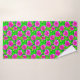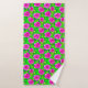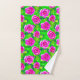 Toalha em um padrão de cor rosa-d'água, cor-de-rosa-fuchsia profunda, rosas com folhas em tons de verde-esmeralda