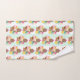Conjunto de toalhas de banho com um padrão de verão com uma tigela de sorvete com 3 bolas deliciosas cobertas com confeitos. Um cone de sorvete também com 3 bolas de chocolate, baunilha e morango. Uma tigela de sobremesa recheada com sorvete de sabor neapolitan com uma deliciosa cereja em cima.