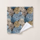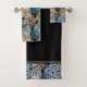 Esse conjunto atraente de toalha de três partes apresenta um padrão de flores de dália gráfica azul e dourada em preto como fundo. A toalha grande de banho é preta sólida, com o padrão floral como uma borda inferior. A toalha de mão e o pano de lavagem têm o padrão, e contrastam lindamente com a toalha de banho. Certifique-se de ver os produtos correspondentes em nossa loja. *Crédito de Design gráfico para os Designs Malachi no Etsy.