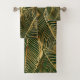 Conjunto De Toalhas Padrão Elegante Verde de Folhas Douradas