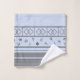 Este design contém letras aleatórias do alfabeto etíope e padrões tradicionais para dar ao seu espaço uma aparência tradicional. Seu fundo azul claro junto com seu sotaque de cinza pálida e escura adiciona uma sensação neutra legal à decoração do banheiro!