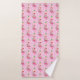 Flores de Natal cor-de-rosa vestindo as luzes de cordas e um chapéu de Papai Noel em fundo rosa com flocos de neve e palmeiras festivamente decoradas. Mostrado aqui num conjunto de toalhas de banho personalizado. Você pode redimensionar o padrão facilmente de acordo com sua preferência e selecionar sua cor de fundo favorita em cada toalha. Adicione sua própria mensagem, se quiser. É um padrão bonito para decorar um banheiro com uma vibração tropical de Natal!