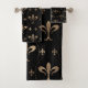 Conjunto De Toalhas Padrão Fleur-de-lis preto e ouro