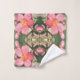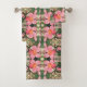 O padrão floral rosa neste Conjunto de Toalhas foi criado de uma fotografia original de flores de jatropha cor-de-rosa e botões florescendo no jardim. A foto de close-up mostra o centro amarelo da flor em meio às pétalas cor-de-rosa. As folhas verdes da flor em um fundo bege terminam o padrão.