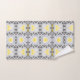 Design de toalha de banho elegante, com um padrão sem soldadura feito de formas geométricas em amarelo, branco, cinzas claras e cinzas escuras.