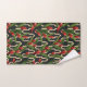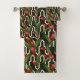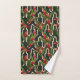 Folhas tropicais verdes e plantas vermelhas de gengibre em um padrão geométrico preto e marfim, este conjunto de toalhas do banheiro é um sotaque perfeito para sua decoração caseira.