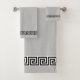 Padrão grego preto elegante no conjunto de toalhas de cinza prateada.
