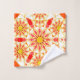 Toalhas colocadas em um padrão mandala de doze pontos em tons de vermelho-tijolo, ferrugem, bronzeado e ouro mostarda