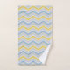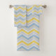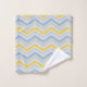 Amarelo, cinza, azul-claro, listras brancas ziguezague.