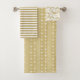 Aqui está um conjunto de toalhas de três peças da bonito Feriada que é festivo e elegante sem ser alto e marrom. Cada uma das peças apresenta um padrão bonito em ouro e branco antigos. A toalha de banho tem um floco de neve, faixa e padrão de pontos. A toalha da mão é dourada e listrada branca. E o pano de lavagem tem uma luva de ouro e um padrão de cachecol com o texto "Feliz Natal". Completamente coordenado, e muito saboroso, especialmente para um banheiro convidado.